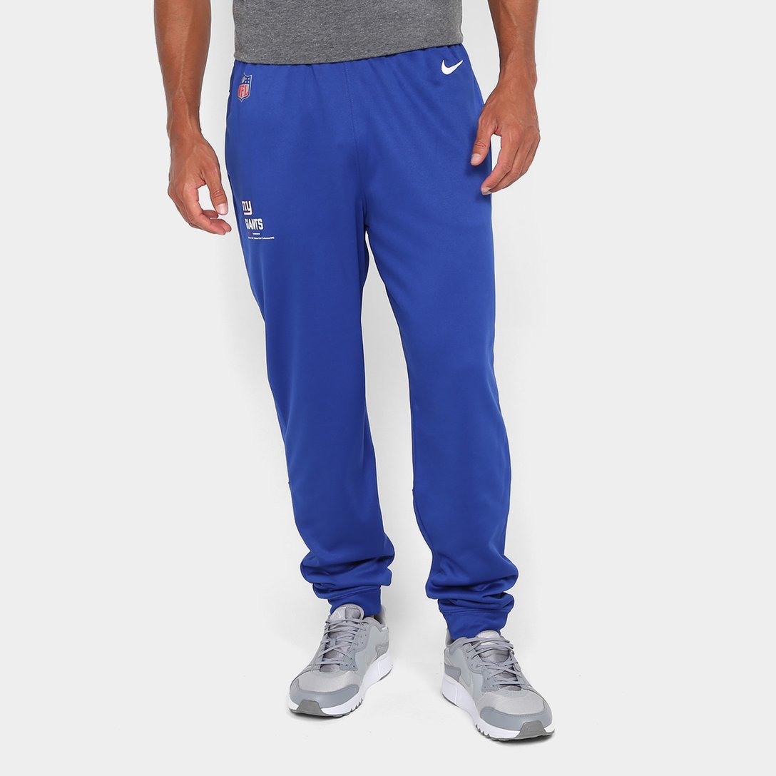 Aposte em um visual esportivo com a Calça NFL New York Giants Nike Masculina! Confeccionada em material leve e confortável, a peça apresenta cós em elástico que fornece maciez na cintura, já os bolsos laterais comportam pequenos objetos. O emblema do time exalta o seu orgulho na hora de torcer. Adquira já essa calça NFL masculina!
