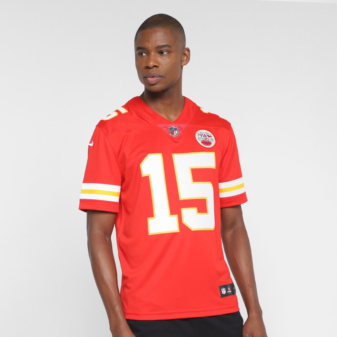 Explore a confiança do futebol americano no seu sportwear, vista a Camisa NFL Nike Kansas City Chiefs Mahomes 15 Limited Team Colour Home Jersey - Player Masculina. Essa peça é confeccionada em material macio e respirável, ideal pra a prática esportiva e também para o urbanwear com toque esportivo e cheio de atitude. Essa camisa masculina Nike possui caimento regular ao corpo, gola V, e lateral em mesh para respirabilidade. Combine com uma bermuda ou calça jeans e esbanje estilo com essa camisa nike da NFL!
