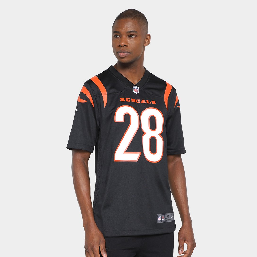 Explore a confiança do futebol americano no seu sportwear, vista a Camisa Nike NFL Cincinnati Bengals Mixon n° 28 Game Team Colour Jersey Masculina. Essa peça é confeccionada em material macio e respirável, ideal pra a prática esportiva e também para o urbanwear com toque esportivo e cheio de atitude. Essa camisa masculina Nike possui caimento regular ao corpo, gola V, e lateral em mesh para respirabilidade. Combine com uma bermuda ou calça jeans e esbanje estilo com essa camisa nike da NFL!