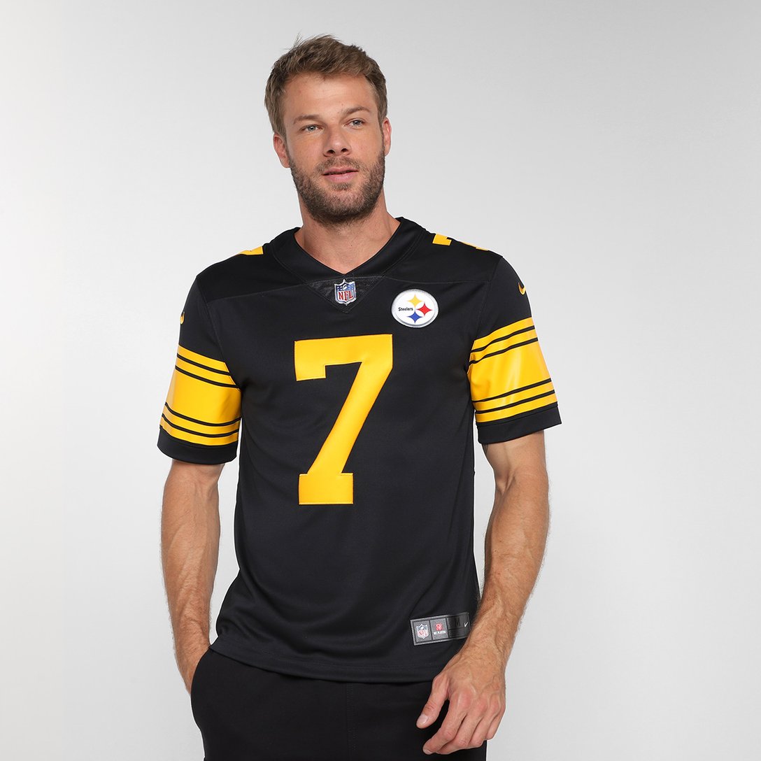 Para quem ama futebol americano e um estilo cheio de liberdade, pede a Camisa Nike Pittsburgh Steelers Roethlisberger 7 Limited Colour Rush Jersey - Player Masculina. Essa peça é confeccionada em material macio ao toque da pele, com tecido tecnológico que afasta o suor e mantém a pele seca por mais tempo. Conta com ótimo caimento no corpo, escudo do Steelers em destaque e logo NFL e Nike. Combine com sua camisa de time e mostre sua personalidade com essa camisa jogador NFL!