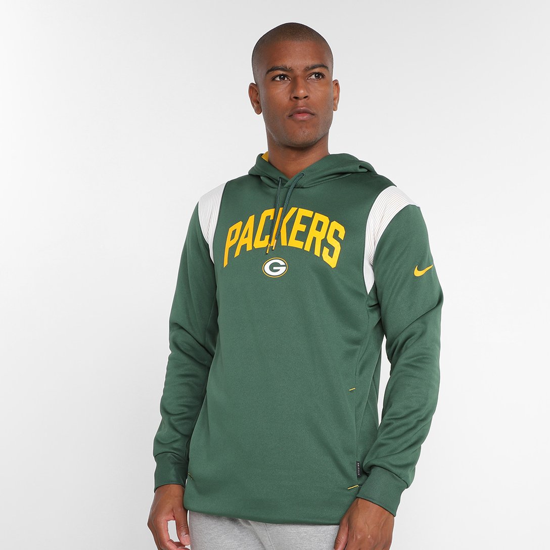 Bora torcer pelo seu time de futebol americano favorito com o Moletom NFL Green Bay Packers Nike Pullover Masculino! Confeccionado em material leve e macio, esse moletom NFL masculino apresenta bolsos laterais que comportam pequenos objetos e capuz com regulagem que te mantém aquecido em dias frios. Não deixe pra depois e compre já o seu!