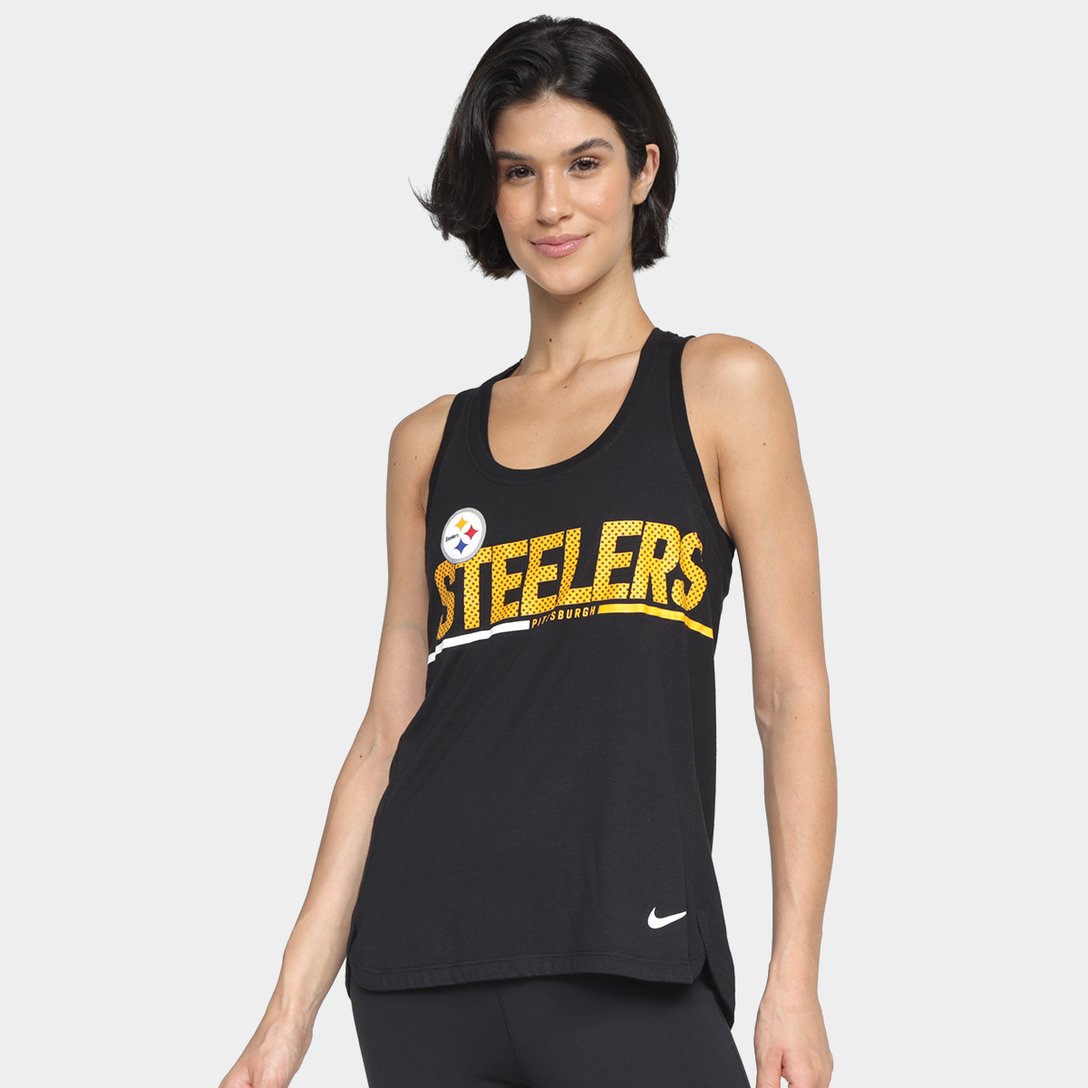 Estilo esportivo atualizado com a Regata NFL Pittsburgh Steelers Nike Feminina! Perfeita para as fãs de futebol americano, essa regata NFL feminina apresenta estampa esportiva do seu time preferido. O tecido leve e macio amplia a sensação de conforto enquanto você assiste aos jogos. Não deixe para depois e compre já essa regata Nike feminina!